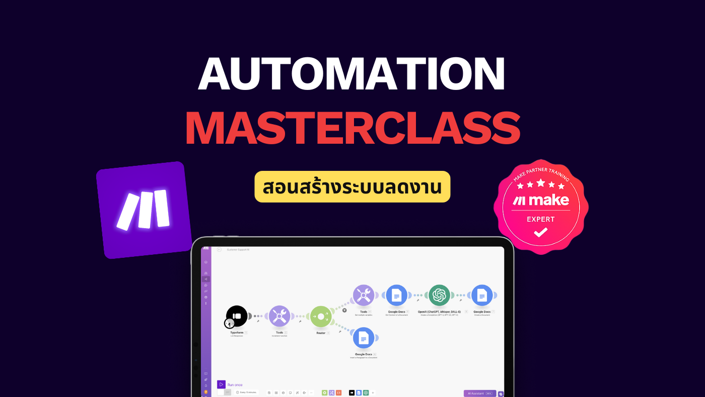 สำหรับผู้เริ่มต้นศึกษาเรื่อง AI Automation เพื่อช่วยลดเวลาการทำงานวันละ 2-3 ชั่วโมง คอร์สได้รับการสนับสนุนจากรัฐบาล เรียนจบรับเงินคืนเต็มจำนวน